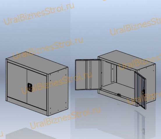• Конструкция представляет собой односекционный корпус с двумя распашными дверями,полки не предусотрены (1 ярус хранения)