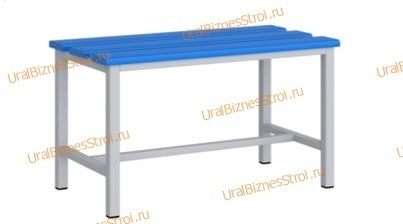 * Верхний настил сиденья выполнен из пластика(полимерный профиль) ,синего либо серого цвета. *Каркас скамьи сварной и выполнен из профильной трубы.