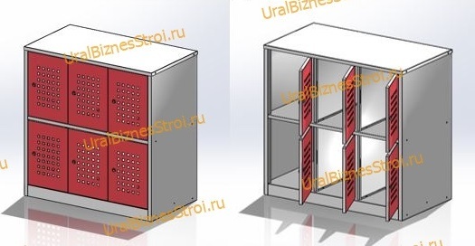 • Шкаф состоит из 3 секций,с 6 ячейками.