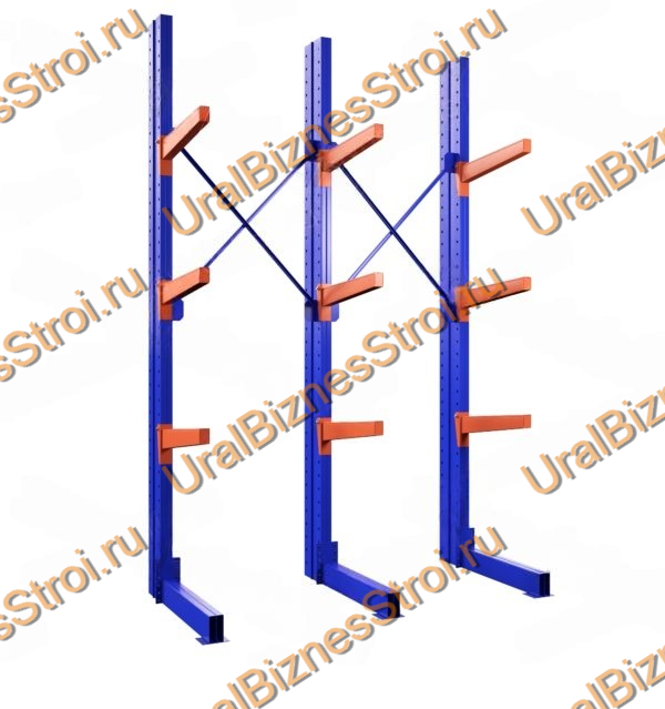 Стеллаж консольный односторонний 3000x1150x1070 мм тяжелый 3 яруса