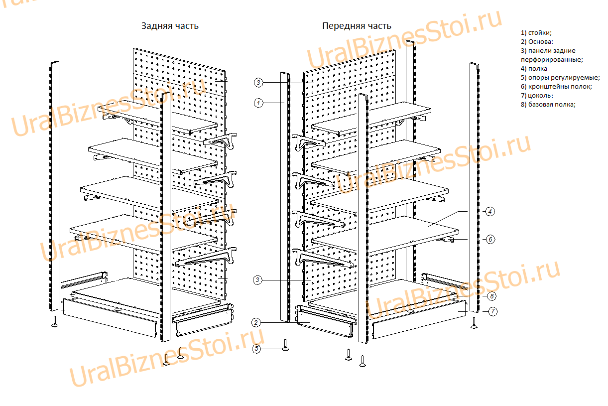 Если же вам необходимы свои типо размеры с определенной растоновкой, нагрузкой и количеством стеллажей, мы будем рады вас проконсультировать по почте или телефону. Подберём по самым выгодным ценам торговые стеллажи.