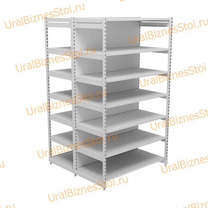 Каталог Стеллажи металлические Торговые стеллажи Торговые островные стеллажи (Усиленные с передней стойкой) Торговый островной стеллаж (Усиленный с передней стойкой) 2350*400*1200 7 полок