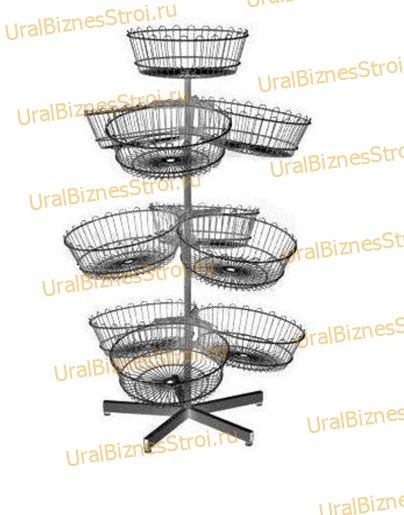 Каталог Торговое оборудование для магазинов Проволочная продукция (Корзины/стойки) Стойка универсальная вращающаяся «Ротбанс», 10 круглых складных корзин